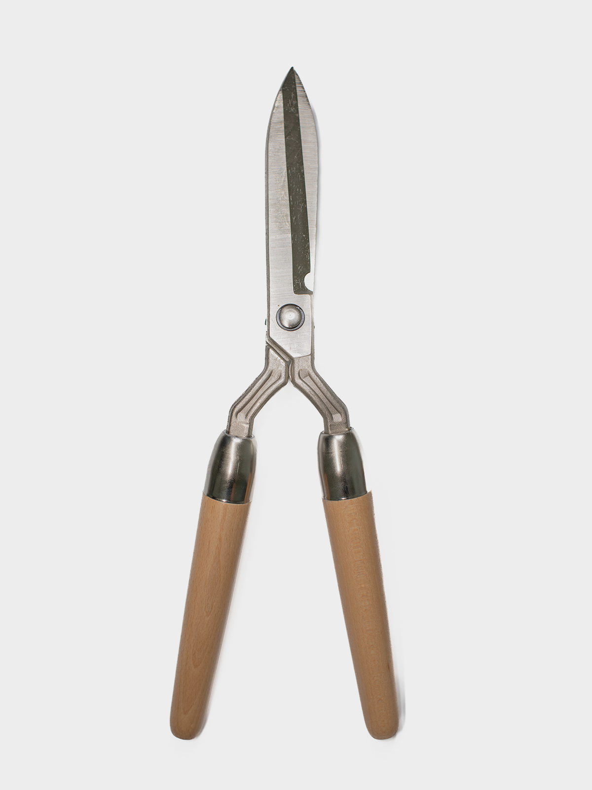 Tesoura adequada para o corte de relva e de sebes. Lâminas em aço carbono forjado, niquelado. Cabos em madeira encerados.